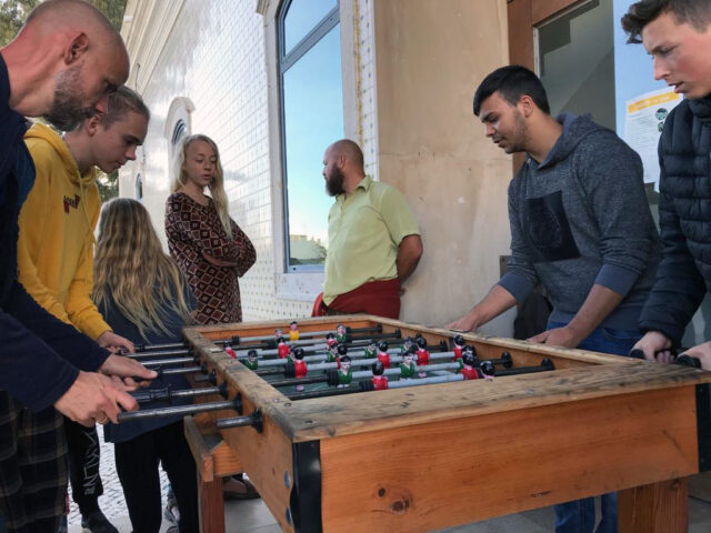 Efter frokost kørte vi ind til Olhao, for at banke de lokale i bordfodbold. De unge mennesker rundt om bordet har helt sikkert øvet sig de sidste 18 år af deres liv – og var virkelig gode.