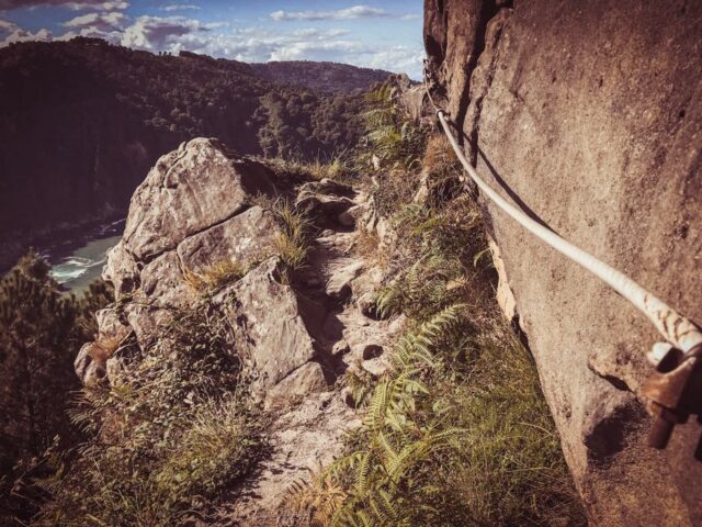 Nede i godt behold, så var der kun én vej tilbage – og det var op – via en direkte vej op gennem en klippespalte med træer på begge sider. 2 gange måtte jeg kapitulere og gå. Men motivatoren Alex fik mig hurtigt op i “løb” igen.