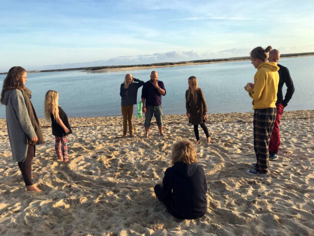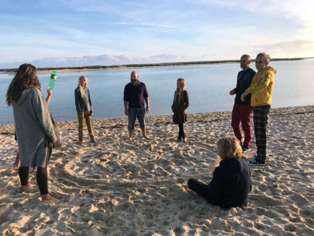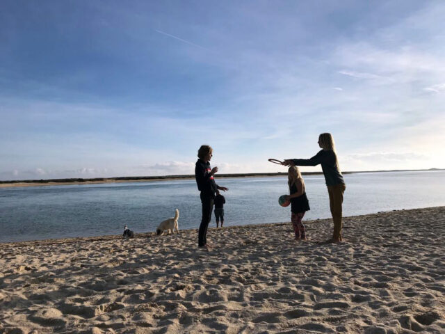 Efter den lidt skuffende oplevelse ved lystbådehavnen i går, havde vi planlagt at tage til en rigtig strand med sand og mulighed for at lege.