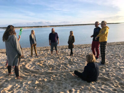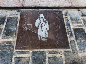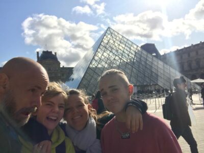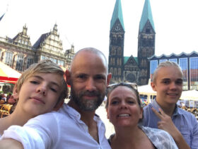 Efter en gåtur i de små gader i centrum gik vi ned til en park, hvor de har lavet trædesten ud over floden. Den her lille aktivitet var mere besøgt end den historiske centrum – og ungerne løb så hurtigt de kunne over på den anden bred.