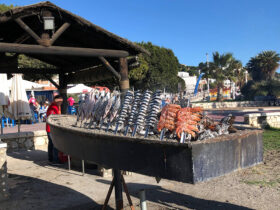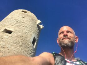 Vi løb alle en tur ind til slottet og Bo fortsatte så lidt længere. Da han kom tilbage sprang vi i havet – Alex skulle dog ikke have noget af at bade i det kolde vand. Nede ved stranden er der et toilethus med en kold udendørsbruser. Så der er total luksus.